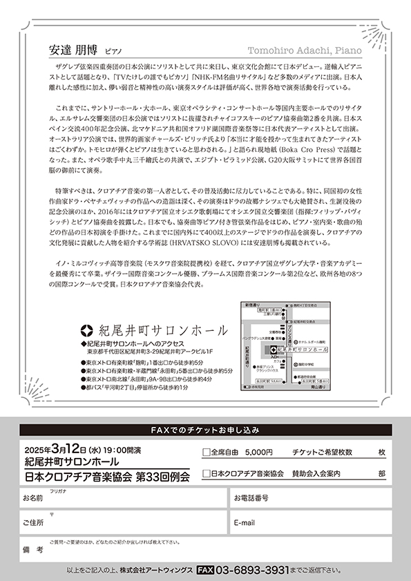 TEL 03-6869-5641 株式会社アートウィングス・日本クロアチア音楽協会 事務局