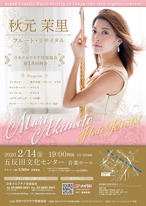 ▶TEL 03-6869-5641 (日本クロアチア音楽協会)当会の例会単独出演では最年少、フルート界の若きエース秋元茉里氏が初登場。