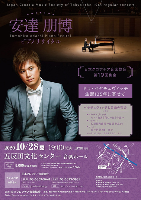 ▶TEL 03-6869-5641 (日本クロアチア音楽協会)クロアチア音楽第一人者のピアニスト安達朋博がお届けする