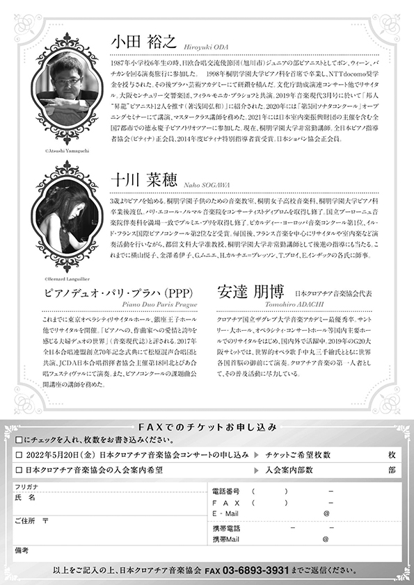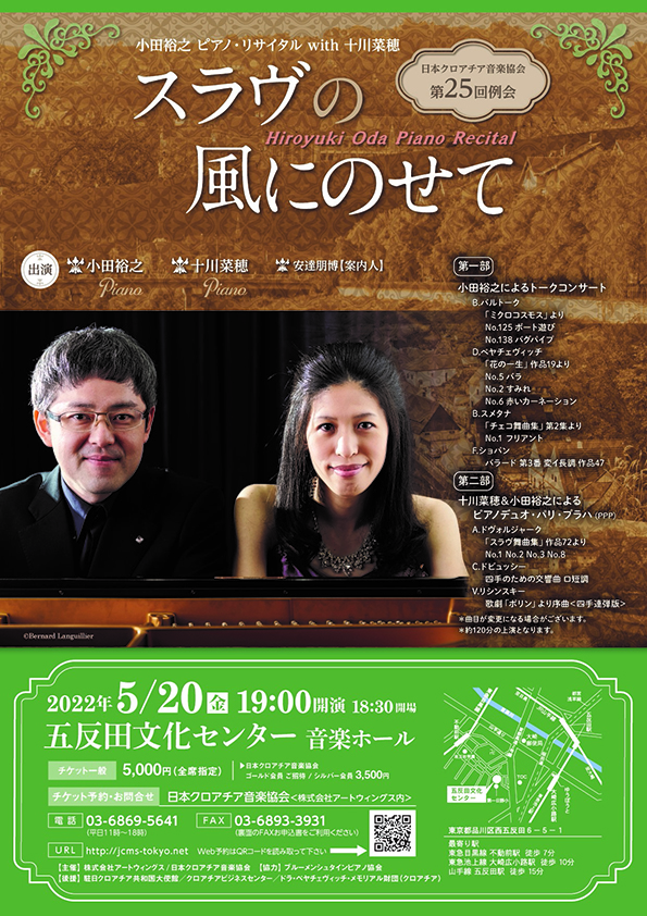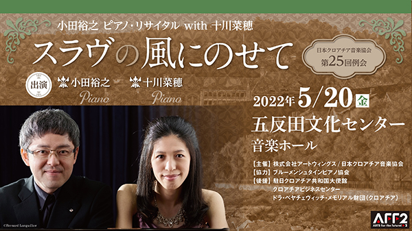 TEL 03-6869-5641 日本クロアチア音楽協会 (株式会社アートウィングス内)国内外でご活躍中のピアニスト小田裕之氏と十川菜穂氏による