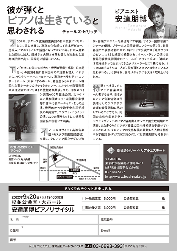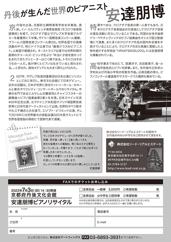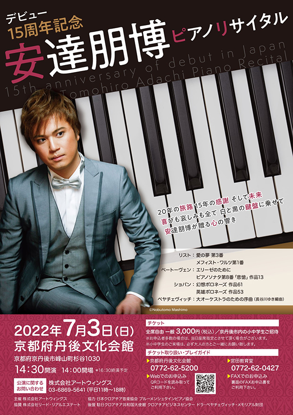 TEL 03-6869-5641 株式会社アートウィングス丹後が生んだ世界で活躍するピアニスト安達朋博の