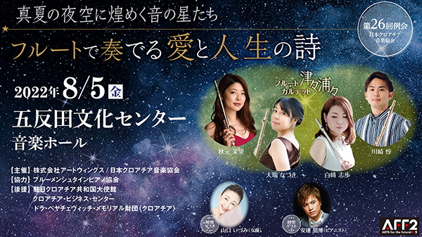 スペシャルゲストに女優の山口いづみ、ピアニスト安達朋博フルートの定番曲からクロアチア音楽、日本民謡まで