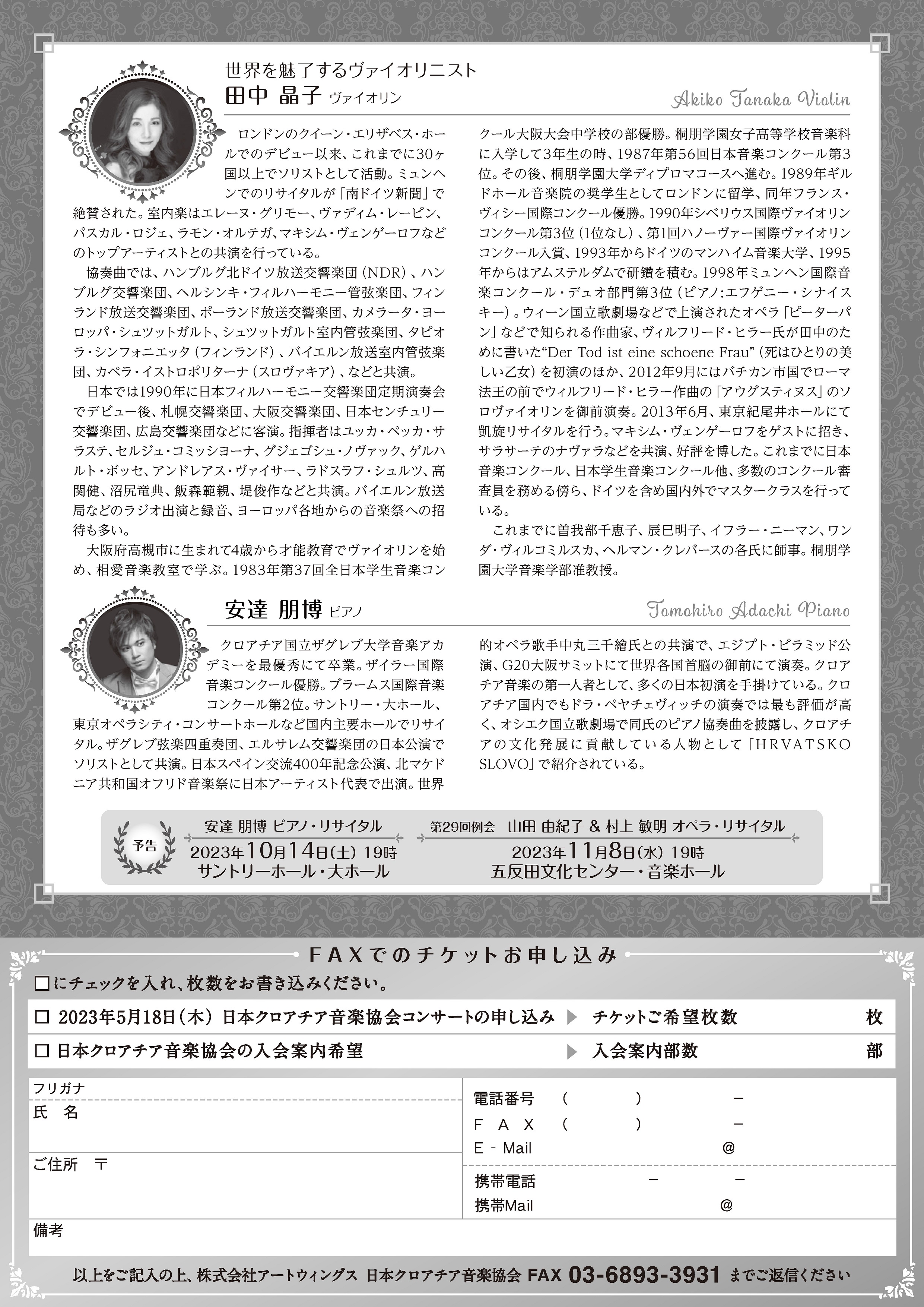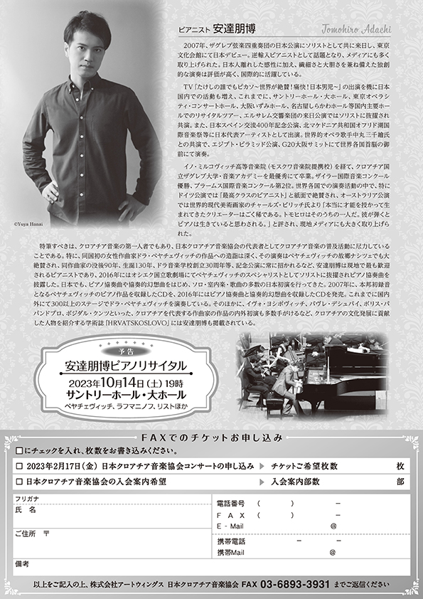 TEL 03-6869-5651 株式会社アートウィングス・日本クロアチア音楽協会 事務局