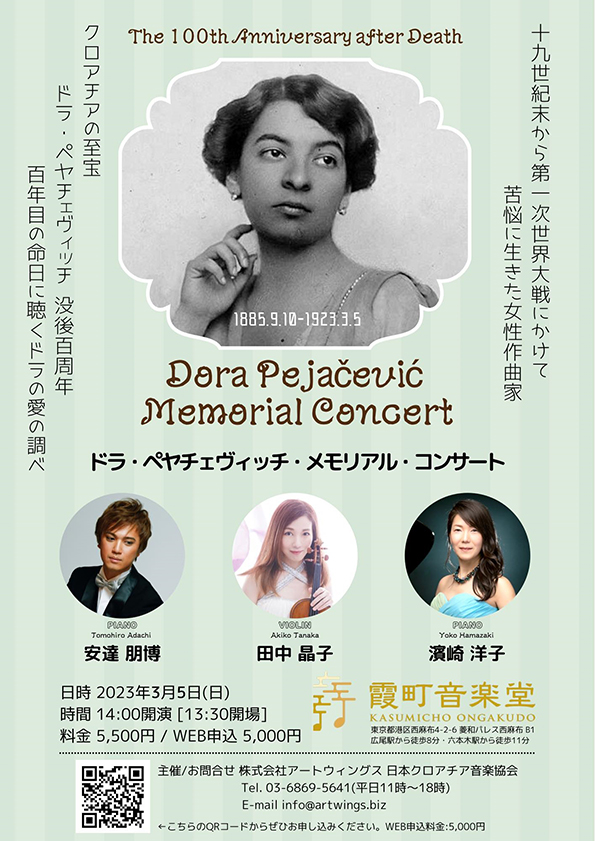 TEL 03-6869-5641 株式会社アートウィングス・日本クロアチア音楽協会 事務局ドラ・ペヤチェヴィッチ没後100周年を祈念して