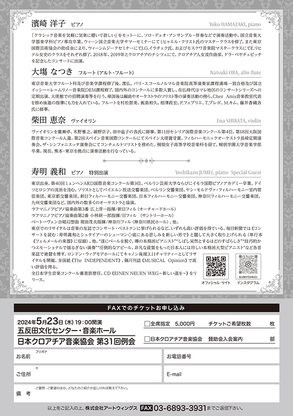 ほか◆主催◆ 株式会社アートウィングス・日本クロアチア音楽協会